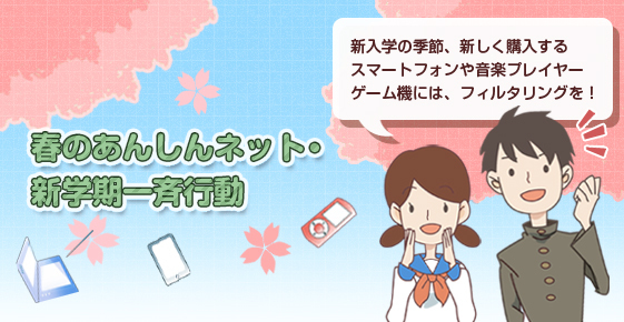 多くの青少年が初めてスマートフォン等を手にする春の卒業・進学・新入学の時期を踏まえ、今年も2月から5月にかけて「春のあんしんネット・新学期一斉行動」が行われます。